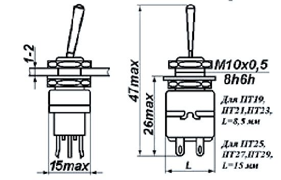 ПТ23 – Серия тумблера: переключатель тумблерный.