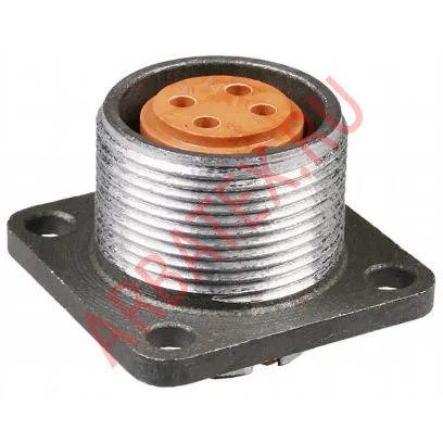 Приборная вилка (розетка) конструктивно состоит из: 1 - корпуса c фланцем, 2,3 - изоляторов, 4 - гнезд (штырей), 5 - пружинного кольца.