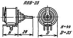 Резисторы ППБ-25Г переменные проволочные регулировочные для навесного монтажа.