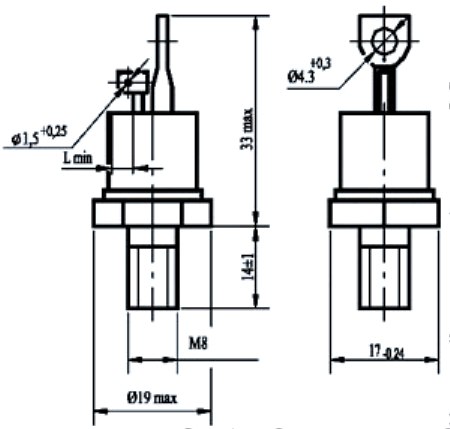 Тиристоры Т112, Т122, Т132, Т142 - штыревые тиристоры общего назначения, регулируют и преобразовывают постоянный и переменный ток до 80А частотой до 500Гц в цепях с напряжением 100В - 1600В.