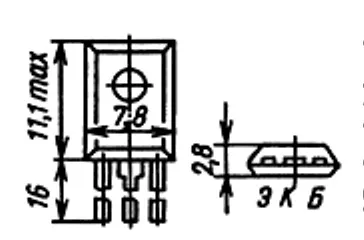 Масса транзистора в пластмассовом корпусе не более 0,8 г, кристалла не более 0,01 г.